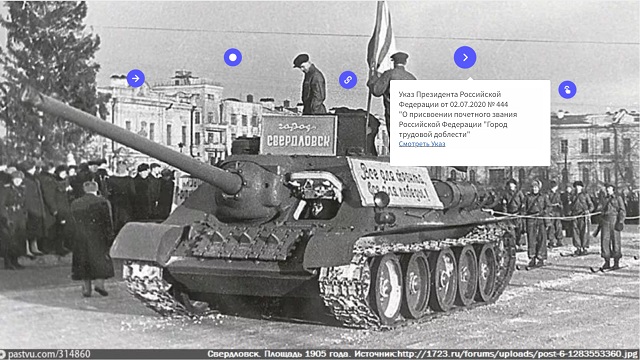 Екатеринбург получил почетное звание «Город трудовой доблести» летом 2020 года года. Звание присваивается городам, чьи жители внесли значительный вклад в Победу в Великой Отечественной войне, обеспечив производство военной и гражданской продукции. Подробнее об этом звании можно узнать с помощью интерактивного плаката, который разработали специалисты информационно-библиографического отдела Муниципального объединения библиотек города Екатеринбурга.