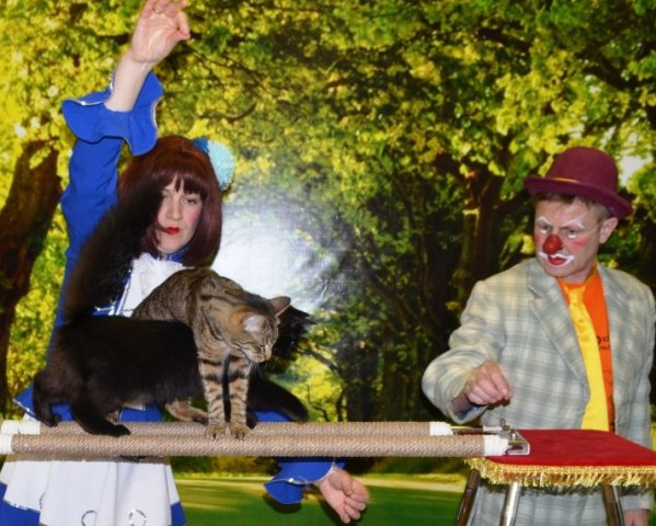 В Год экологии, в рамках Недели детской книги, в библиотеке прошел мастер-класс по уходу за домашними питомцами. Но перед этим приглашенные гости — дрессировщики домашних животных и кошки – устроили представление для детей. Кошки ловко прыгали через обручи, ходили по канатам и по своим дрессировщикам, играли в мяч и показывали еще массу забавных трюков.