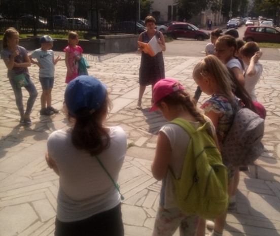 Началась прогулка в Литературном квартале, где около памятника А. С. Пушкину ребят ждала литературная игра. Две команды соревновались в знании сказок поэта и загадывали друг другу загадки, изображая мелками элементы рисунка. По улице Первомайской юные путешественники дошли до места, где в 18 веке проходил крепостной вал и заканчивался Екатеринбург. Школьники с интересом прослушали небольшой рассказ о событиях 300-летней давности, когда их родной город только начинал свой путь в будущее. Завершилась прогулка на улице Тургенева. Здесь команды определяли по карте свое местоположение и искали литературные улицы нашего города. Ребята познакомились с интересными фактами из биографии И. С. Тургенева, вспомнили произведения, которые они читали, узнали какова протяженность улицы, названной в честь классика.