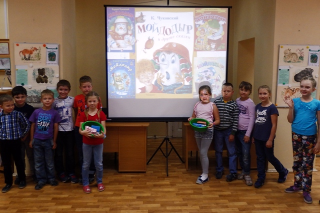 Сначала все с удивлением рассматривали любимого писателя в мультфильме 1944 года «Телефон», где снимался сам Чуковский! А затем вспоминали любимые сказки, смотрели отрывки из мультиков и весело играли. Во время игры ребята помогли Федоре собирать посуду, Мойдодыру — отмывать грязнулю, Доктору Айболиту — лечить разных зверюшек, а также познакомились с Мурочкой, Крокодилом и Бибигоном.