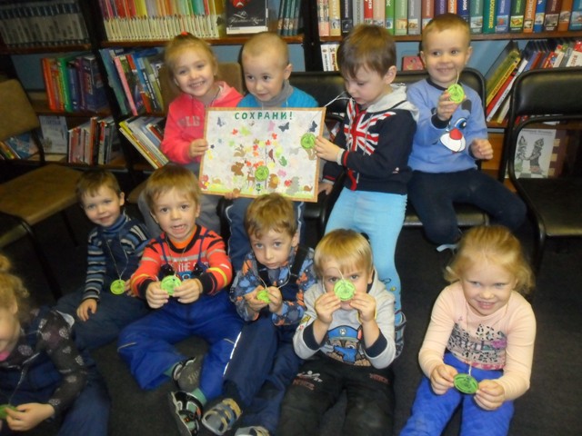 Отгадали дошкольники «Лесные загадки», а потом сделали плакат с призывом «Сохрани!». На плакате изображены трава, цветы и деревья, насекомые, птицы и животные — те удивительные творения природы, которыми восхищается человек, и которые обязан сохранить. В конце занятия детям вручили медали защитников окружающей среды с надписью «Будущее зависит от тебя!».