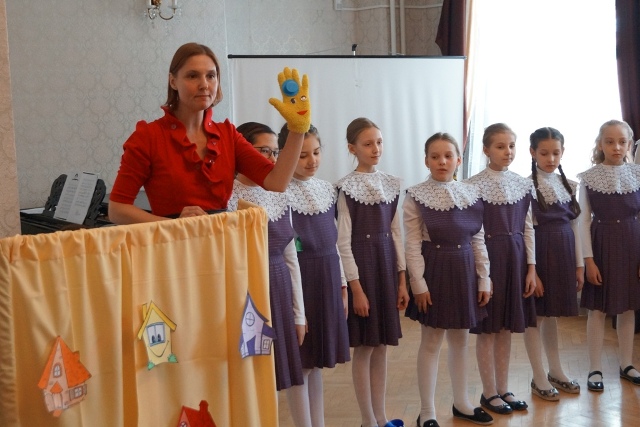 Презентация началась с театрально-музыкального представления. Песни из книги «Разноцветный городок» исполнили участницы вокального ансамбля «Акварель» под руководством Оксаны Абакумовой из музыкальной школы №6. А сотрудники библиотеки рассказали истории из жизни жителей «Разноцветного городка», показав мини-спектакль.