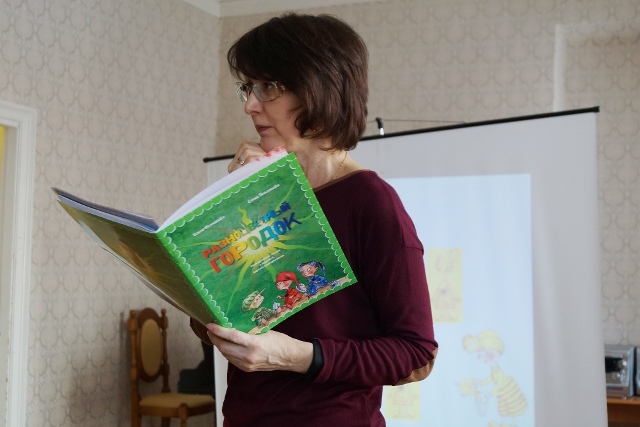 После представления о проекте «Разноцветный городок» собравшимся рассказала Ольга Колпакова. Она отметила уникальность издания, объединившего творчество писателя и композитора. Автор также продемонстрировала, как можно использовать «Разноцветный городок» для изучения различных явлений в игровой форме.