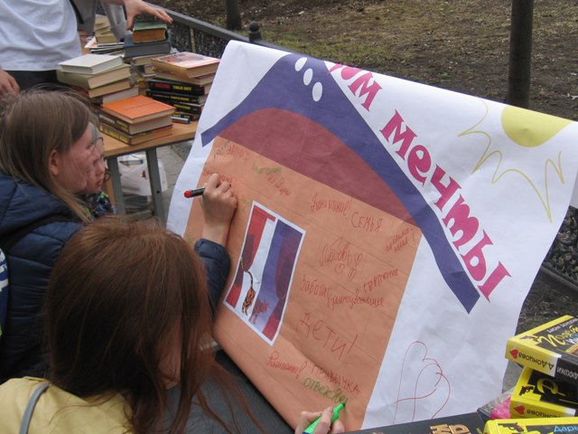 Волонтеры Екатеринбургского автодорожного колледжа предлагали прохожим подумать, в чем заключается самая главная ценность для счастливой семейной жизни? Для этого студенты нарисовали на большом листе ватмана кирпичный дом, а участники акции писали свои ценности в отдельных кирпичиках дома. В акции приняли участие как молодежь, так и семейные пары со стажем. В результате «Счастливый дом» построили на уважении, любви, заботе, терпении, сочувствии, доброте… За участие в опросе горожане могли взять предложенные книги. Акция «Дом мечты» прошла уже в шестой раз.