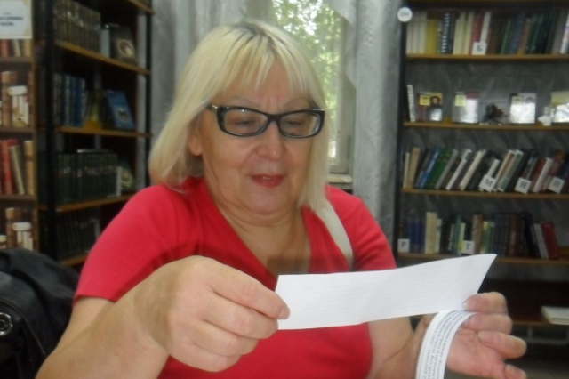 Иллюстрированные издания из фонда читального зала помогли участникам встречи узнать интересные факты о Доме Севастьянова, Доме Железнова и других знаменитых усадьбах Екатеринбурга. Ответили любители поэзии и на вопросы викторины о достижениях и рекордах Екатеринбурга. А Валентина Яковлевна Филиппова поделилась своими впечатлениями о Фестивале живых историй «Мой Екатеринбург» и прочла замечательное стихотворение «Любимый город», с которым участвовала в конкурсе. Встреча получилась насыщенной и интересной, а завершилась она коллективным исполнением популярной песни «Если вы не бывали в Свердловске…».