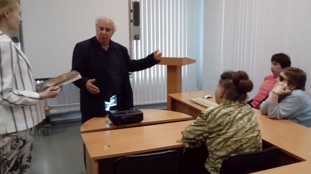 Интересный рассказ автора был проиллюстрирован архивной видеохроникой, современными фото и видеоматериалами. Автор ответил на все вопросы гостей и подарил книгу с диском библиотеке.