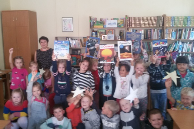 Для маленьких путешественников «прогулку» по космосу провел звездочет, в костюме которого был сотрудник библиотеки. Он рассказал ребятам о начале освоения космоса. А затем вместе с ними посмотрел отрывок из мультфильма про Белку и Стрелку, поиграл в планеты и «Солнышко».