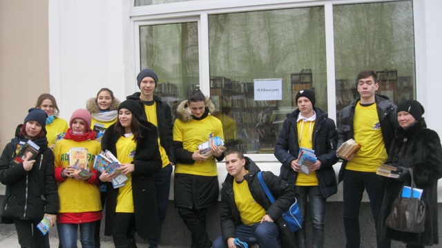На улице волонтеры – студенты Автодорожного колледжа – раздавали прохожим книги.