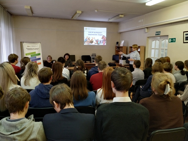 На встречу с представителями ЕАСИ пришли учащиеся 10-11-х классов. Для них провели презентацию деятельности академии, виртуальную экскурсию по двум кафедрам: «Журналистика в области культуры» и «Визуальные коммуникации», консультации заведующих кафедрами и ведущих преподавателей.