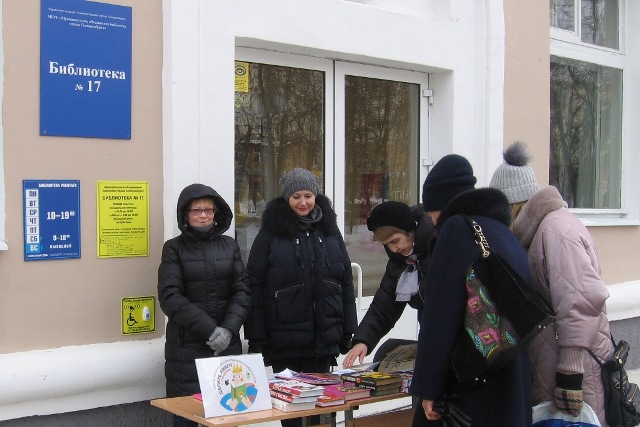Главной площадкой акции «Дарите книги с любовью!» стала библиотека № 17, в которой запущен проект трансформации «Новая библиотека» (совместный проект МБУК МОБ, архитектурного бюро SVESMI (г.Роттердам) и московского арт-агентства The July 16). Сотрудники библиотеки вышли на улицу и поздравляли прохожих с Днем книгодарения, рассказывая об истории праздника и предлагая принять участие в акции «Дарите книги с любовью!». Главная идея – вдохновлять людей дарить друг другу хорошие книги и показать, что бумажная книга остается актуальным подарком и не теряет своей ценности.