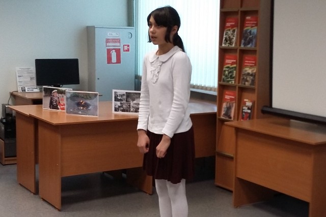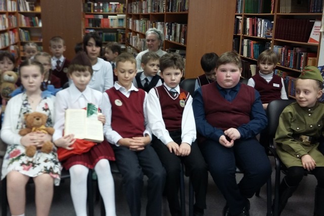 Но прежде, чем начался конкурс, ребята познакомились с почетным гостем и читателем библиотеки – Любовью Сергеевной Николаевой. Она рассказала ребятам о своем военном детстве, о пленных немцах и о том, как дети и взрослые приносили им хлеб, отрывая от своей скудной пайки, об отце, ушедшем на фронт и пропавшем без вести.