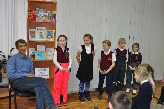 Сегодня в детской библиотеке им. А.П. Гайдара был настоящий праздник – в гости к юным читателям пришел Артур Гиваргизов. Рассказы, стихи, пьесы, вопросы, ответы, и снова рассказы и стихи – можно было бесконечно слушать, смотреть и радоваться!