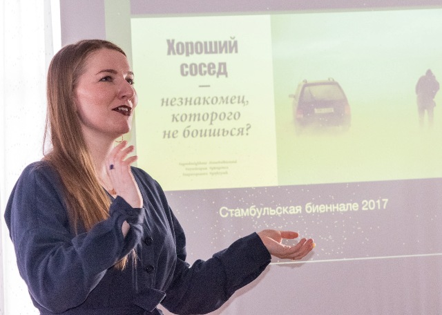 После чего гостья из Санкт-Петербурга, Настасья Пилецкая, которая смогла приехать благодаря поддержке Консульства, прочитала лекцию «Современное искусство Турции». Сейчас она преподает программы по истории искусств в РАНХиГС и работает в Северо-Западном филиале ГЦСИ. А несколько лет назад она училась в Стамбуле, вдохновилась городом, страной и бурлящей жизнью современного искусства. Своими открытиями она поделилась с гостями.
