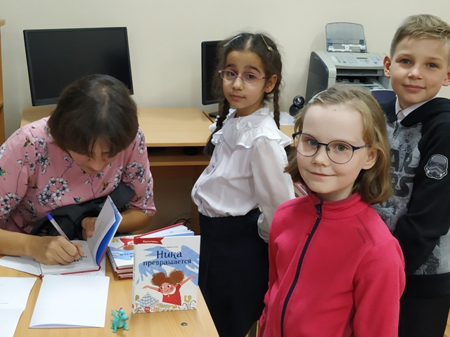 Дети активно задавали автору вопросы, а в конце встречи получили книгу «Ника превращается» с автографом и еще долго фотографировались с Еленой Мамонтовой. Ребята остались в восторге от встречи с таким интересным человеком.