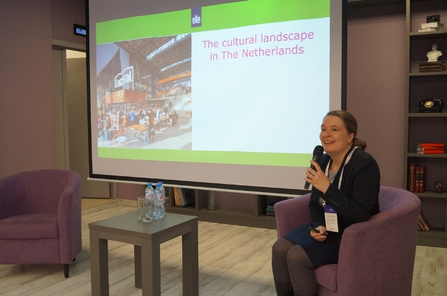 Советник Посольства Нидерландов Янет Веррейзер рассказала собравшимся о том, как европейское государство участвует в поддержке культурных инициатив, а также отметила большую роль образовательных программ для мигрантов и старшего поколения.