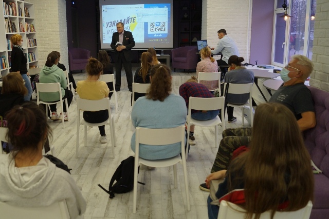 В День чтения в библиотеках МОБ прошли долгожданные оффлайн-мероприятия, конечно, с соблюдением всех необходимых мер безопасности. Так, в Городском библиотечном информационном центре состоялась творческая встреча Александра Кердана с молодыми читателями. Поэт, прозаик, сопредседатель Союза писателей России, координатор Ассоциации писателей Урала, заслуженный работник культуры РФ представил несколько своих книг. На встрече прозвучали стихи в исполнении автора, а также — музыкальные композиции на стихи Александра Кердана. Аудитория тепло реагировала на каждое прозвучавшее стихотворение, но особенно приветствовала стихи о любви.