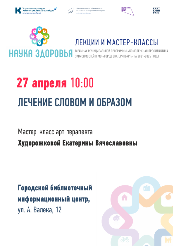 27 апреля в 10:00 в библиотеке на Антона Валека, 12 в рамках проекта «Наука здоровья» пройдет мастер-класс «Лечение словом и образом». Спикер — арт-терапевт