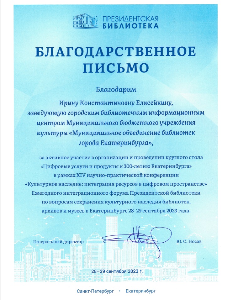 Ведущий специалист Муниципального объединения библиотек Ирина Елисейкина на примере трансформации библиотеки №40 познакомила коллег из разных регионов России с екатеринбургским опытом модернизации муниципальных библиотек. Ирина Константиновна рассказала о том, как изменились пространство библиотек и её деятельность, о проектах библиотеки и о том, как эти изменения оценивают горожане. На площадке «Другой библиотеки» открыт удалённый электронный читальный зал Президентской библиотеки (в общей сложности в Муниципальном объединении работают 14 точек доступа к фондам ПБ). Опыт МОБ в продвижении контента Президентской библиотеки стал особой темой выступления Ирины Елисейкиной.
