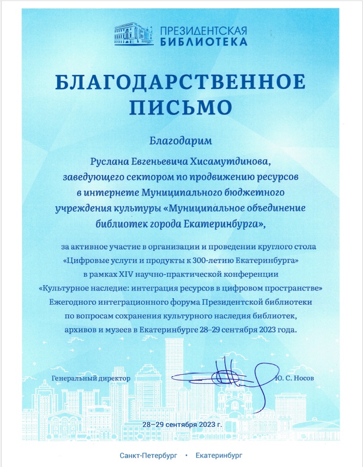 29 сентября участники Научно-практической конференции «Культурное наследие: интеграция ресурсов в цифровом пространстве» стали гостями библиотеки №40 («Другая библиотека»). С приветственным словом к ним обратился заместитель главы администрации Орджоникидзевского района Александр Юрьевич Дмитриев. Он подчеркнул, что и местные власти, и жители района гордятся такой библиотекой.