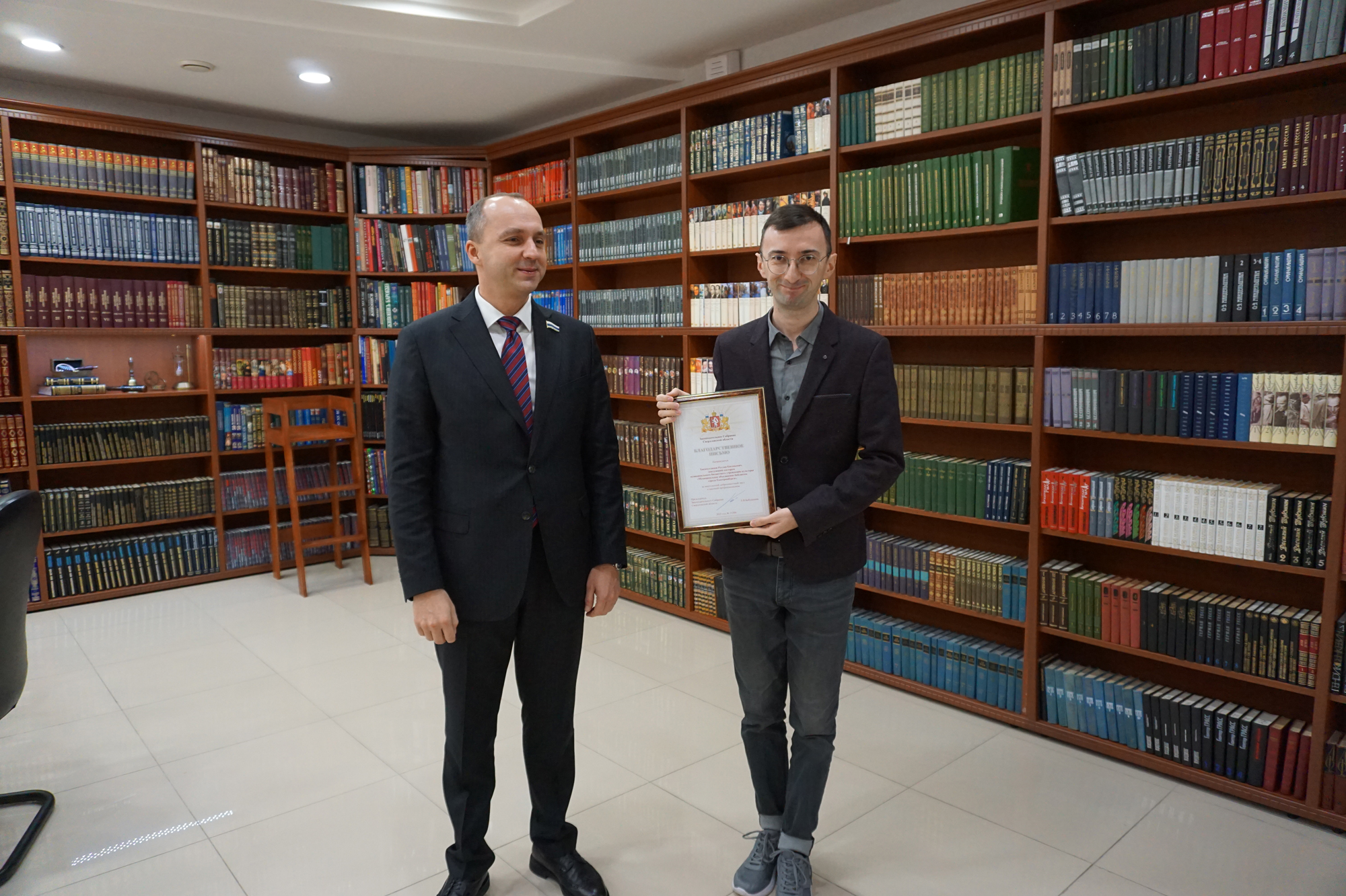 Депутат Законодательного собрания Свердловской области Михаил Клименко сегодня торжественно вручил благодарственные письма Заксобрания специалистам Муниципального объединения библиотек Екатеринбурга!»За многолетний добросовестный труд и высокий профессионализм» благодарственные письма получили:Александр Мурзин — заместитель директора МБУК МОБЕвгения Старкова — главный библиотекарь МБУК МОБРуслан Хисамутдинов — заведующий сектором продвижения библиотечных услуг в сети ИнтернетСветлана Данченко — заведующая Детской библиотекой им. А.П. Гайдара.Поздравляем коллег и желаем дальнейших профессиональных успехов!