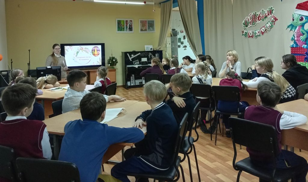 Новый год – это не только подарки, это приятные встречи с друзьями. В конце встречи школьников ждал сюрприз – поздравление от Владимира Александровича, нашего социального партнёра и друга библиотеки.