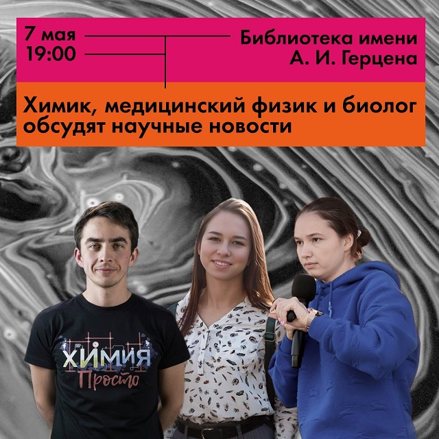 Сейчас новостей очень много, поэтому сложно следить за ними самостоятельно (тем более, если это новости из мира науки). В рамках ток-шоу «Язык Эйнштейна» сами учёные расскажут о недавних научных открытиях, которые меняют наше представление о мире вокруг. Организует мероприятие ИЦАЭ Екатеринбурга в рамках проекта «Энергия науки».В обсуждении новостей будут участвовать:Александр Иванов, автор блога «Химия — Просто», ведущий инженер физико-технологического института УрФУ;Оксана Герцен, кандидат биологических наук, научный сотрудник Института иммунологии и физиологии УрО РАН, старший научный сотрудник Института медико-биологических проблем РАН;Татьяна Кобякова, медицинский физик Национального медицинского исследовательского центра нейрохирургии имени академика Н.Н.Бурденко, инженер кафедры медицинской физики Инженерно-физического института биомедицины (ИФИБ НИЯУ МИФИ).Когда: 7 мая, 19:00Где: Центральная городская библиотека им. А. И. Герцена (ул. Чапаева, 5; зал мировой культуры)Бесплатно, по регистрации: https://itsae.timepad.ru/event/2863618/