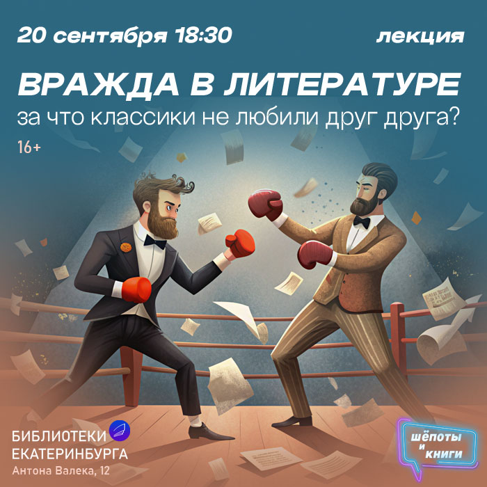 На литературный ринг выходят: Толстой против Тургенева, Хемингуэй против Фолкнера, Булгаков против Маяковского… Приглашаем на лекцию, посвященную интригующим и порой бурным отношениям между великими писателями. Какие конфликты разгорались между знаменитыми авторами и что стало их причиной? Как личные амбиции, литературные предпочтения и общественные взгляды вносили разлад в отношения между классиками? Мы рассмотрим, как вражда влияла на творчество писателей и какие произведения стали результатом этих противоречий. Эта лекция будет интересна всем, кто любит литературу и хочет узнать больше о человеческой стороне знаменитых писателей и поэтов.